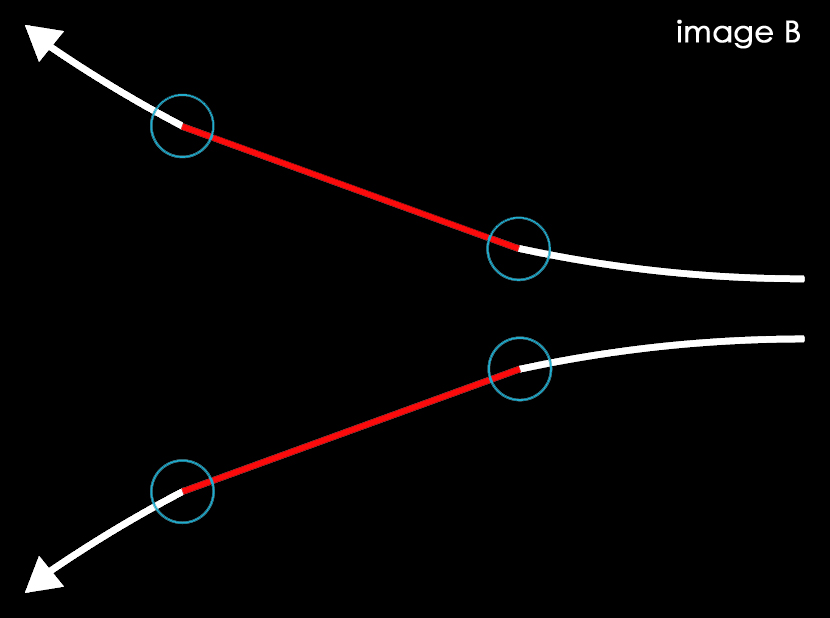図では解り易い様に赤線部分を直線としましたが○で囲んだ部分を境目に他の部分と反り方が異なっているでしょ、imageAの様に全体に弓形になるのではなく○部分が折